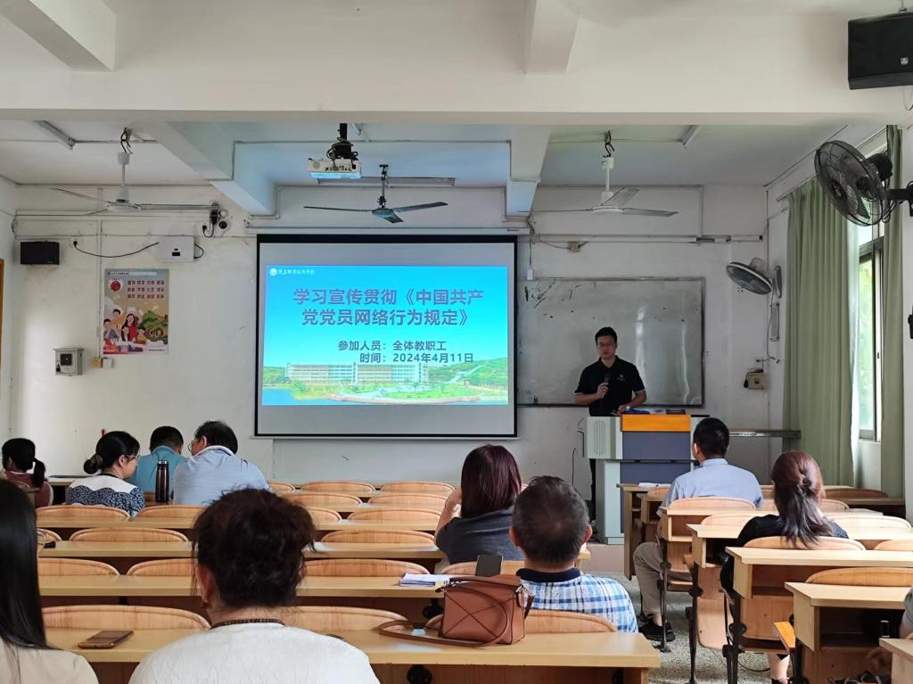 4月11日下午,土木工程系党总支在北校区2-204室召开党员会议,专题学习宣传贯彻《中国共产党党员网络行为规定》。会议由系党总支副书记李振潭主持,土木工程系全体党员同志参加了会议。