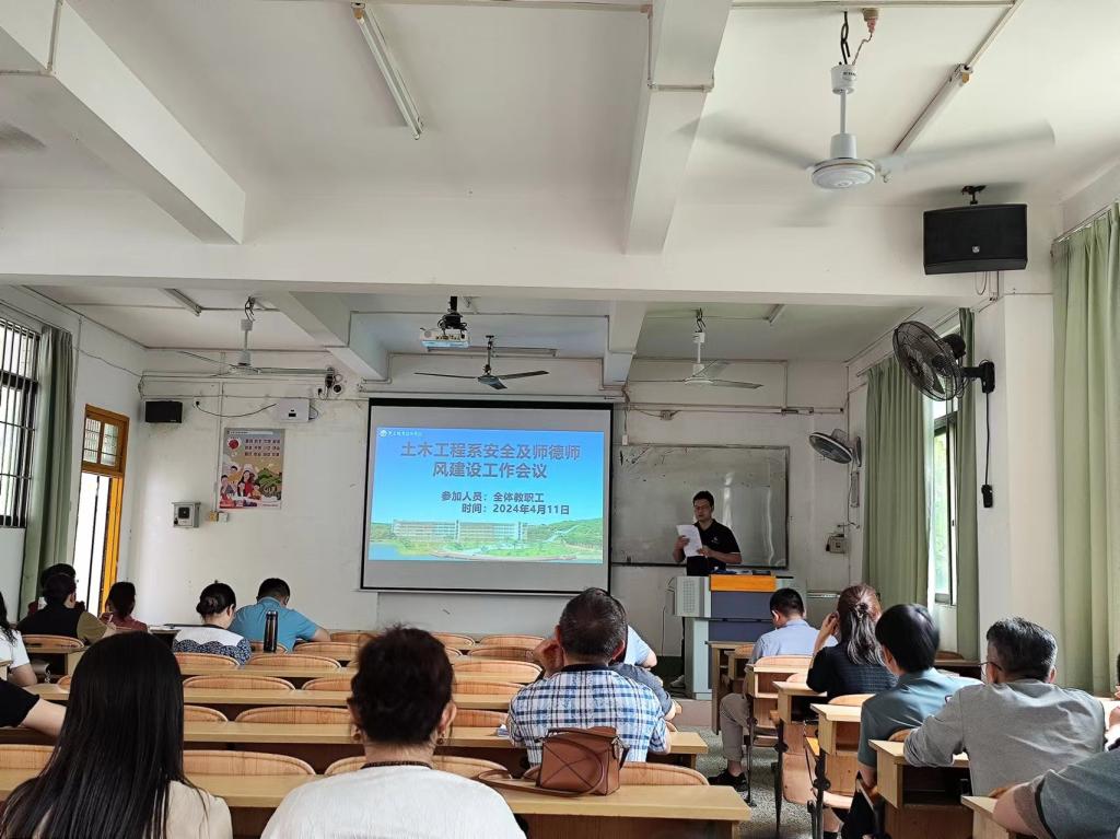 4月11日下午,土木工程系在北校区2-204室召开安全及师德师风建设工作会议,会议由系党总支副书记李振潭主持,土木工程系全体教职工参加会议。