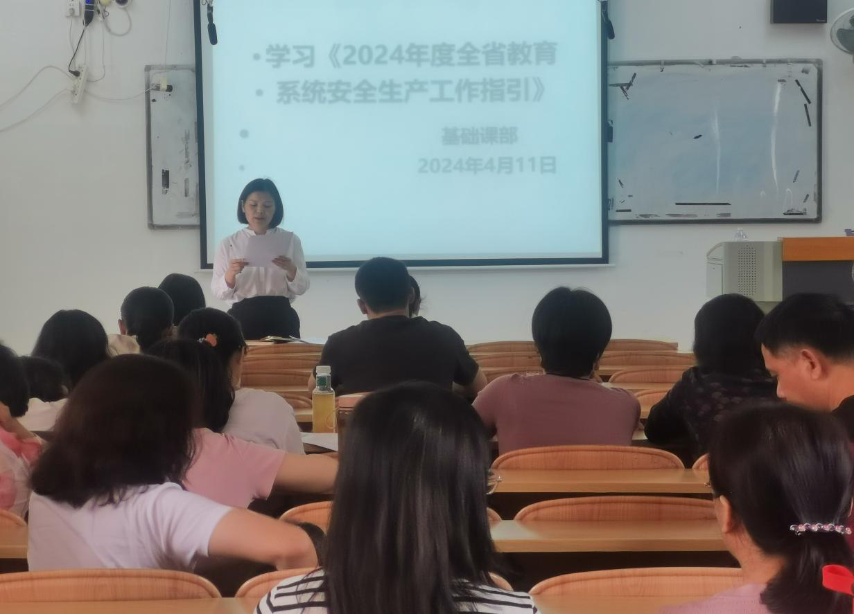 为认真贯彻落实习近平总书记关于安全生产重要论述精神,根据学校近期关于安全工作的部署和要求,基础课部在北校区2栋302召开安全工作会议。会议由基础课部主任卢火艳主持,全体教职工参加会议。