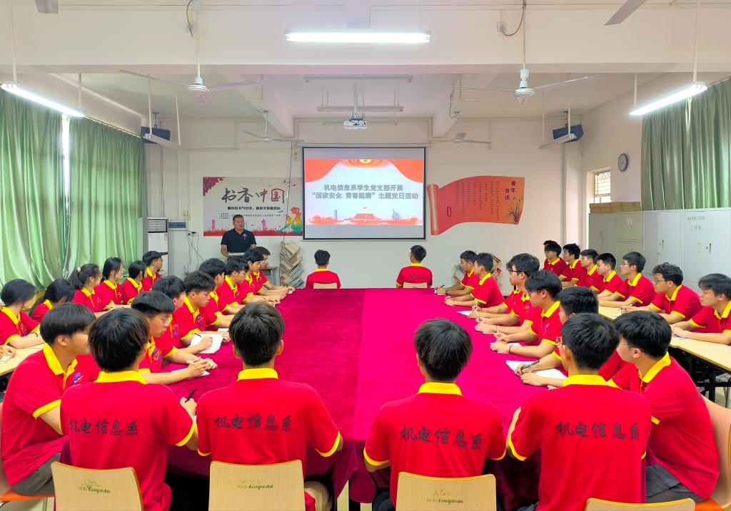 为深入学习贯彻习近平总书记关于全面加强国家安全教育的重要指示精神,切实增强全体师生的国家安全意识、法治意识,居安思危,4月16日,机电信息系学生党支部组织学生党员、入党积极分子在南校区党员活动中心开展“国家安全 青春挺膺”主题党日活动。