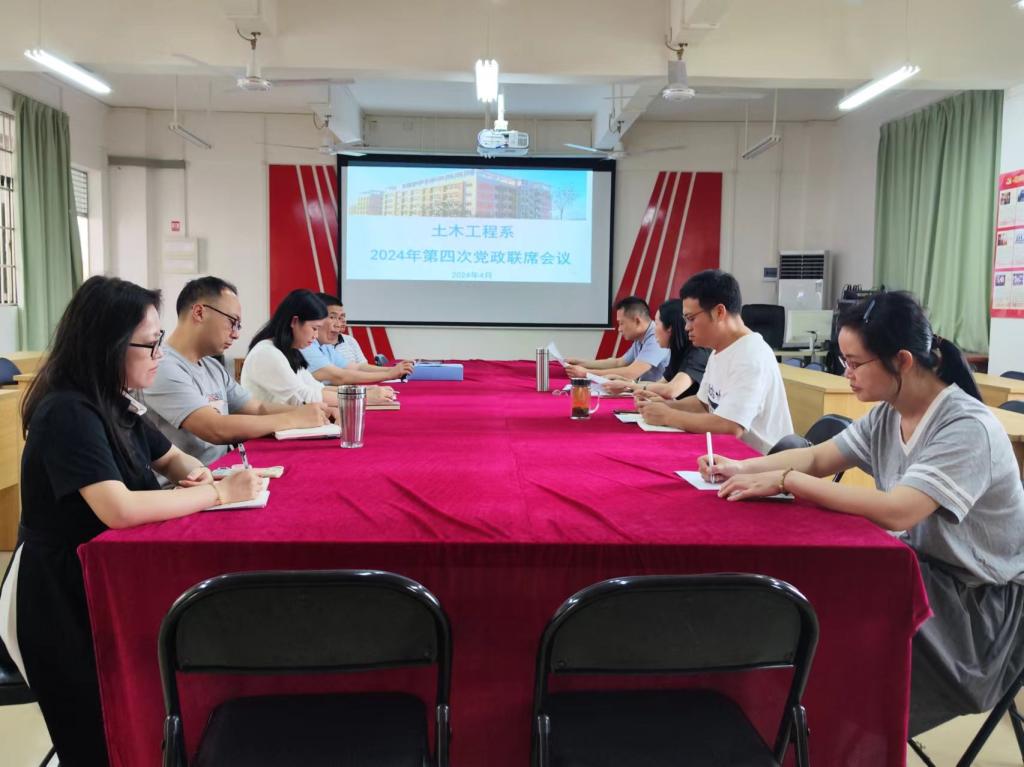 4月19日上午,土木工程系在南校区8-304室召开党政联席会议,系领导班子及相关教职工参加了会议。