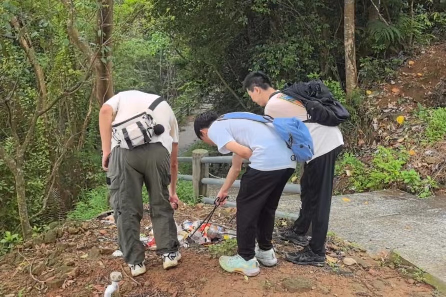 活动伊始,党总支副书记蒋南牧作登山前动员讲话。他强调了团建活动的重要性,鼓励师生们通过共同努力,不仅锻炼身体,更要培养团队合作精神和环保意识。在登山过程中,师生们开展 “捡垃圾”的创文活动。大家沿着山路,将沿途发现的垃圾一一捡起,用实际行动诠释了“保护环境,从我做起”的环保理念。这一举动不仅美化了山林环境,也让学生们深刻体会到了环保的重要性。