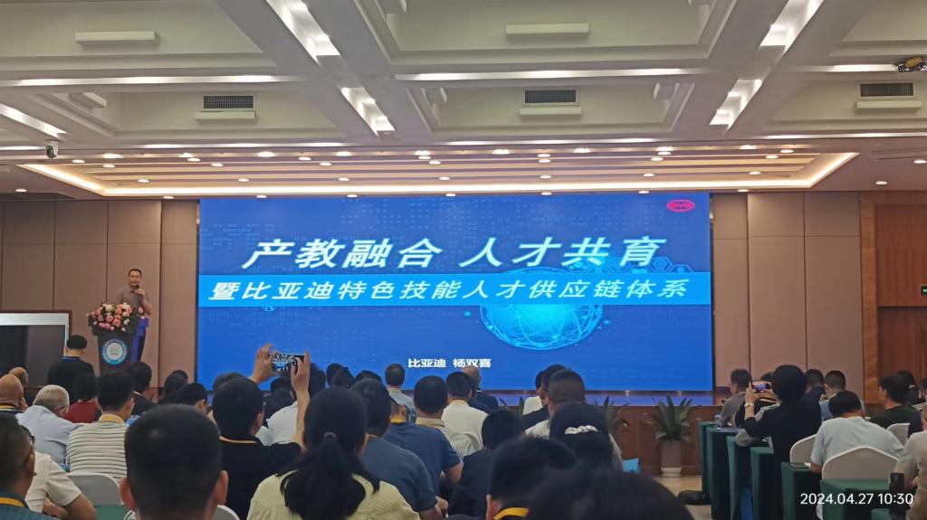 在比亚迪股份有限公司总部满满的现场感、科技感展厅,与会者进一步了解了比亚迪今昔、新能源汽车技术发展走向及汽车行业人才需求情况,并就汽车职业教育、汽车技能人才培养和产教融合、高质量就业岗位拓展问题进行了深入交流,校企初步达成了人才共培、合作育人计划。(文/图:机电信息系。)