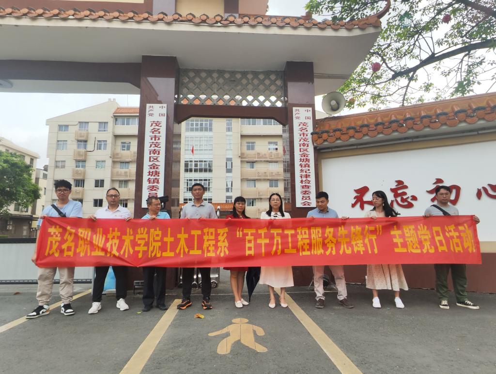 为贯彻落实党的二十大精神和习近平总书记视察广东重要讲话重要指示精神,按照广东省委和茂名市委关于实施“百县千镇万村高质量发展工程”促进城乡区域协调发展工作部署要求,推动《茂名职业技术学院助力“百县千镇万村高质量发展工程”工作实施方案》落地落实,4月29日上午,土木工程系党总支组织教工支部支委、学生支部支委、部分教研室主任、党员教师到茂南区金塘镇开展“百千万工程服务先锋行”主题党日活动。