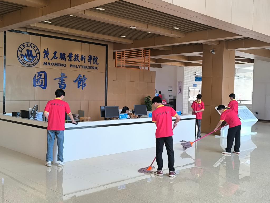 “我为先锋”戴牌仪式结束后,40余名入党积极分子们和党建中心全体成员前往学校图书馆开展卫生大扫除活动,为师生营造一个干净、温馨的书香环境。积极分子们纷纷表示:为了学校各项教育事业的高质量发展,哪里有需要,哪里就有我们“我为先锋”的旗帜。(文/图:机电信息系)