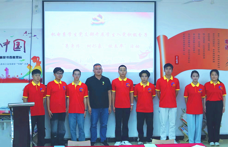 会上,张汉军宣读了《机电系学生党支部关于在学生党员及入党积极分子中开展“亮身份,树形象,做表率”活动的方案》,要求亮身份、做表率,自觉接受老师和同学们的监督,努力让每一名学生党员和入党积极分子成为一面旗帜,充分发挥其先锋模范、文明示领和学习表率作用,积极营造比有对手、学有榜样、赶有方向、帮有伙伴、超有目标的争先创优氛围。张汉军要求,要敢于将学生党员和入党积极分子的身份亮出来,展示我们机电学子的青春风采,扛起我们先人一步的成长成才责任。亮身份就是亮强大底气,亮先锋形象,亮乐于奉献。全体积极分子要时刻以党员标准要求自己,树立好党的形象,宣传好党的思想,传播好党的声音。要敢于与身边、校园和社会上一切有损党的形象的言论、行为作坚决斗争;要带头学好专业知识,苦练专业技能,提高服务意识,做成人成才的骨干、标兵;要带头践行社会主义核心价值观和社会主义荣辱观,带动周围学生积极投身到茂名创文巩卫的大潮中去,用实际行动为打造文明校园、安全校园做出应有贡献;要带头学好专业知识,苦练专业技能,锤炼担当本领,做可担当民族复兴大任的时代新人。