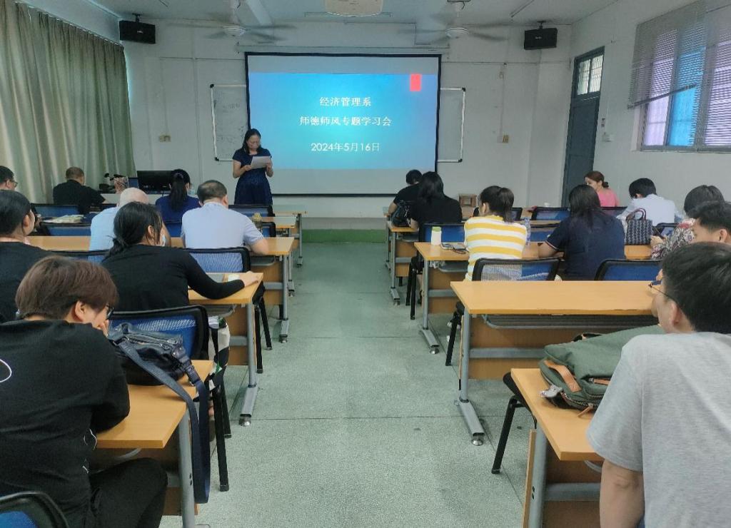 5月16日下午,经济管理系在1栋307召开了党员大会暨师德师风建设专题党课,会议由经济管理系主任、经管系教工党支部书记崔萍主持,全体教职工参会。