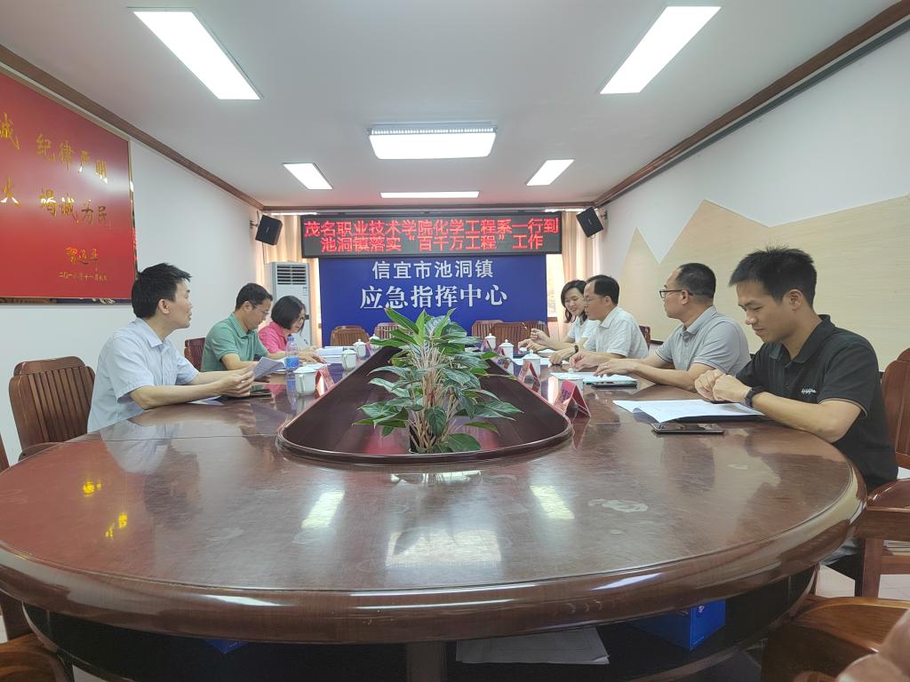 5月24日,为落实学院与信宜市池洞镇 “百千万工程”结对共建工作,茂名职业技术学院化学工程系负责人陈少峰,食品教研室主任张榕欣,食品专业教师甘钊生、吴力亚一行4人赴信宜市池洞镇开展“食惯嘴粉皮”深加工和特色水果青梅种植加工等项目的调研工作。池洞镇党委副书记黄新任,副镇长凌大武,镇人大办主任吴舒萍,镇农业农村办公室主任黄耿兴参与调研活动。