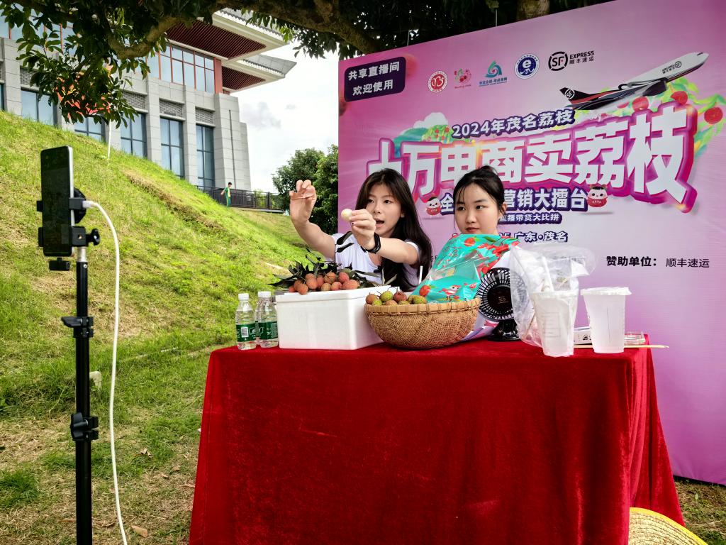 今年“十万电商卖荔枝”活动内容包括茂名荔枝直播带货大比拼、全民电商营销大擂台、顺丰“鲜荔杯”校园电商直播大赛三大部分。当天启动仪式结束后,茂名荔枝直播带货大比拼、顺丰“鲜荔杯”茂名荔枝全国院校电商直播大赛选手们在荔枝园内火热开播,比拼场面精彩激烈。
