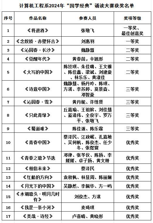 5月29日,计算机工程系在南校区2号教学楼304教室举办2024年“国学诵读”决赛,共计176名学生参加活动。系主任周洁文、系党总支副书记蒋南牧、系副主任周春以及辅导员担任决赛评委。