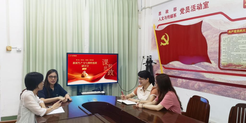 本次研讨活动中,团队成员讨论了新质生产力的内涵与实践意义、回顾了学院课程思政培训班上的《新质生产力——课程思政新赛道》讲座的内容,探讨了在新时代背景下新质生产力融入人文与传媒系各专业课程的路径。