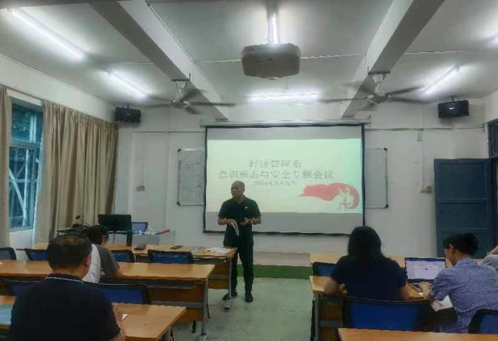 近日,经济管理系在1栋307开展假期安全教育专题会议,会议由经管系党总支副书记黄劲主持,全体教职工参会。