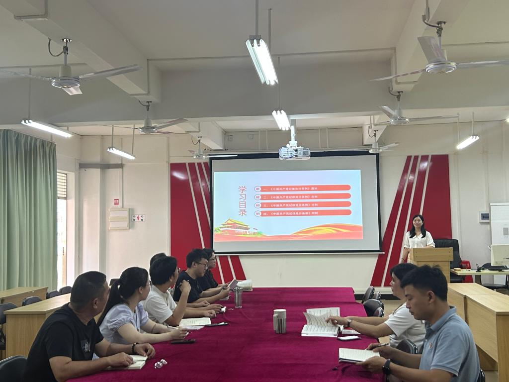 杨木兰从“为什么学”、“学什么”和“如何学”为框架,从党的自我革命这一当前重要任务出发,讲述新修订的《中国共产党纪律处分条例》的重要意义和学习要求。杨木兰结合《中国共产党纪律处分条例》与工作实际进行了讲解,提醒全体党员需存敬畏之心,在各项工作和日常生活当中提高风险防范意识,自觉学纪、严格守纪,以严明的纪律筑牢思想防线。