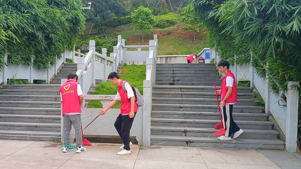 活动期间,我系学生党支部还组织师生在公园各角落开展“创文巩卫”活动,分组在广场、绿化带、阶梯和廊道等区域进行卫生清洁,用实际行动践行了“志愿服务”精神。