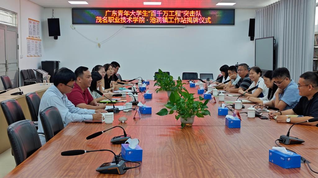 座谈会后,举行茂名职业技术学院广东青年大学生“百千万工程”突击队池洞镇工作站挂牌仪式。(文/图:计算机工程系)