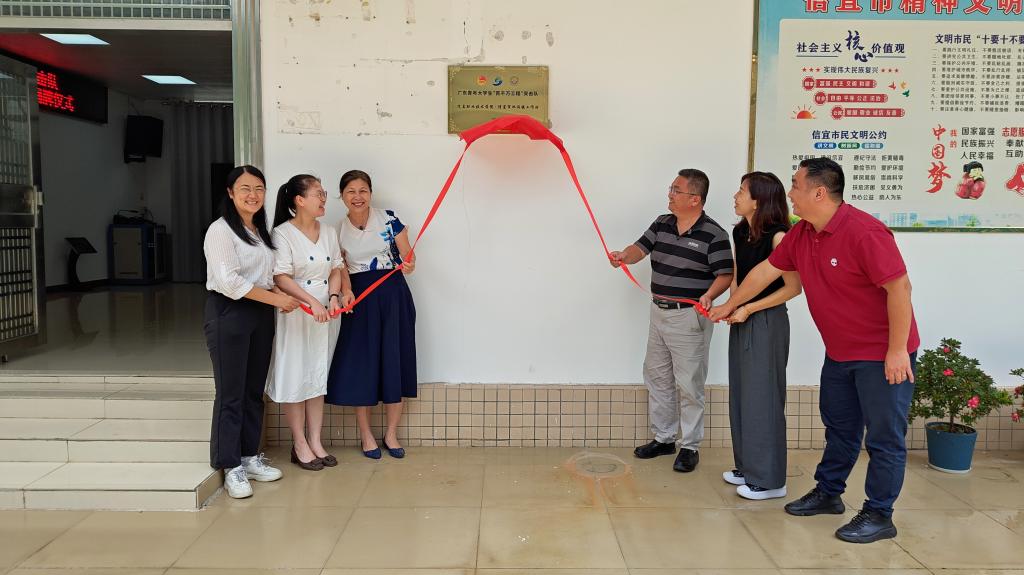6月24日,计算机工程系主任周洁文一行前往信宜市池洞镇参加广东青年大学生“百千万工程”突击队池洞镇工作站挂牌仪式。信宜团市委书记温梓鸿、池洞镇副镇长梁瑞明、池洞镇党委委员陈明、池洞镇扶参村支部书记罗楚煜、扶参小学校长黎富炎及我校教师代表参加了本次挂牌仪式。