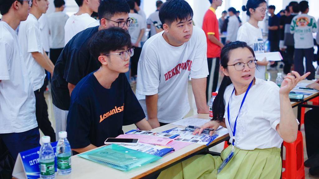 这次校园招聘会现场热闹非凡,广东皓昇光电科技、广东华讯实业、广东冠聚新材料科技、广东索奇电器科技、江门馗达玻科技、江门时捷物流、江门新美金属材料、江门市辉龙塑料机械、鹤山天山金属材料制品、鹤山雅图仕印刷、鹤山倍狮科技、鹤山市米高家居用品、鹤山市得润电子科技、鹤山市锦达华工业、鹤山市日创电梯、鹤山市富源塑料五金制品、鹤山市锦达化工等一众企业摊位前都是人头涌涌,吸引了众多2024届“校友”和2025届毕业生一探究竟。随着校企合作的进一步深入,鹤山又将是推进我们毕业生高质量就业的又一好去处。(文/图:招生就业部、机电信息系)