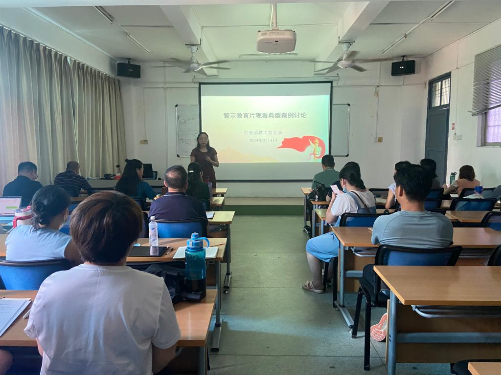 7月4日下午,经济管理系在1栋307召开党纪学习专题会暨期末、暑假工作布置会,会议由经济管理系主任崔萍主持,全体教职工参会。