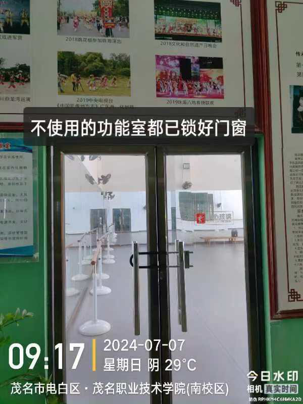 本次安全大检查由基础课部主任卢火艳带队,副主任黄丽和体育器材及场馆管理员等人员共同参与。检查范围覆盖了运动场、器材室、南校区体育馆、南校区美育实践基地等重点区域和场所。检查组对各个区域进行了逐一排查,重点检查了消防器材的配备与完好情况、体育设施设备的安全情况、南校区体育馆安全情况等。同时,还对放假停用的各功能室的门窗、电器是否关闭,防盗措施及卫生状况等进行了细致检查,确保不留死角、不留隐患。