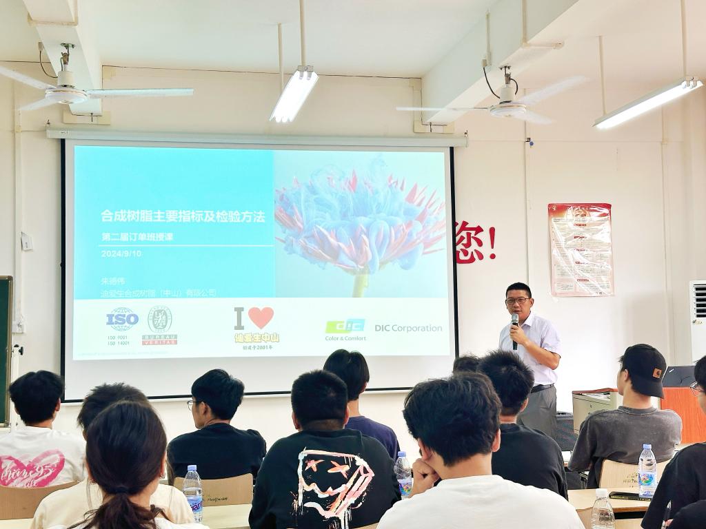 9月10日,迪爱生合成树脂(中山)有限公司三位企业导师马宇航总经理、雷冠雄部长、朱德伟部长进校园给化学工程系2022级“迪爱生”订单班全体学生现场授课。