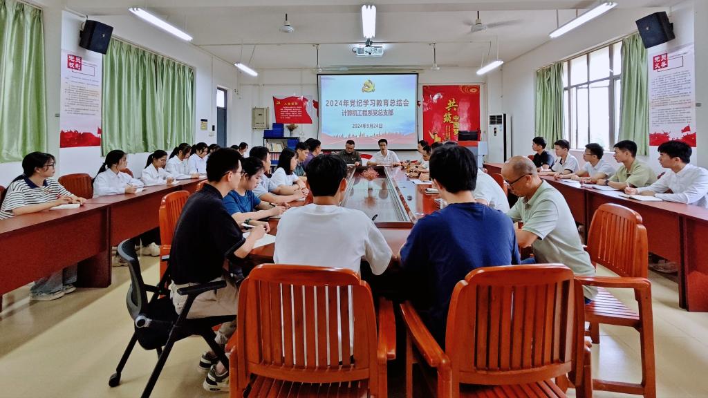 9月24日,计算机工程系党总支在南校区6号教学楼401会议室召开党纪学习教育总结会议,系教工党支部、系学生党支部在校党员、预备党员和入党积极分子等32人到会,会议由系主任周洁文主持。