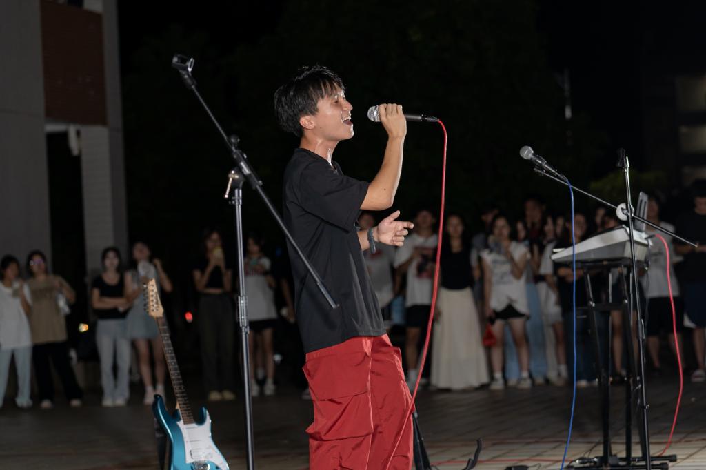 9月26日晚,南校区迎新晚会在13栋宿舍楼前揭开序幕。艺术团的同学们带来了精彩的开场舞《forever》,瞬间点燃了现场气氛;一首《我的美丽》歌曲的旋律温柔而深情,仿佛是一缕春风,轻轻拂过心田,带给人无尽的安慰和力量;音乐协会的同学们带来的《在我成为井井有条的大人之前》歌曲的旋律悠扬动听,仿佛能穿越时空,带观众回到那个无忧无虑的时代。歌词中充满了对过去的怀念和对未来的期待,鼓励我们在成长的道路上勇敢地追求自己的梦想。晚会上演着不仅仅是一首首歌曲,一段段舞蹈,更是一种态度,一种对生活的热爱和对未来的憧憬。