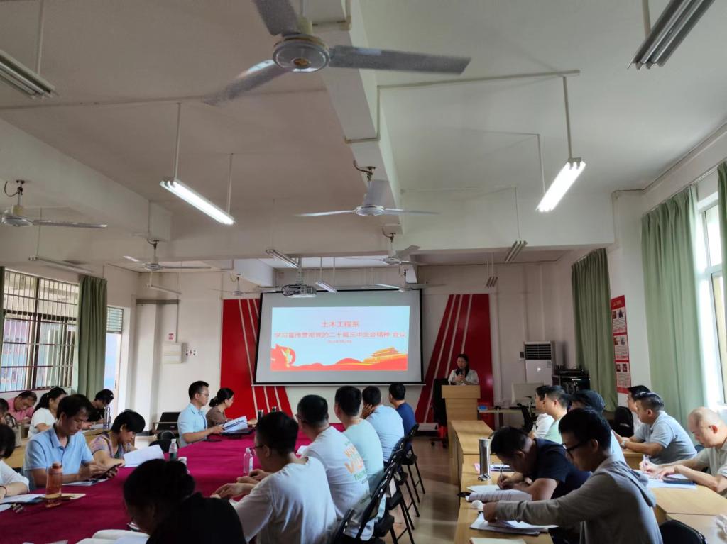 近日,土木工程系在南校区8-304室召开学习宣传贯彻党的二十届三中全会精神会议和党纪学习教育总结大会,会议由系负责人冯川萍主持,土木工程系全体教职工参加会议。