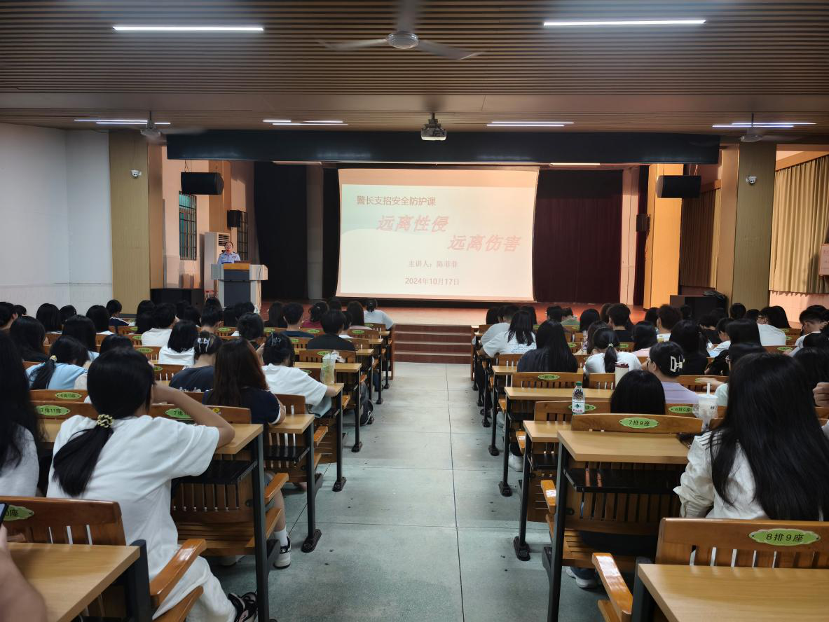为了进一步加强学校安全管理,增强学生的防范猥亵、远离性侵害的意识,提升学生的自我保护能力,10月17日,经济管理系邀请了茂名市公安局刑警支队一大队三级警长陈菲菲开展“远离性侵 远离伤害”为主题的防性侵教育宣传讲座,共计350名2024级新生聆听了此次讲座。