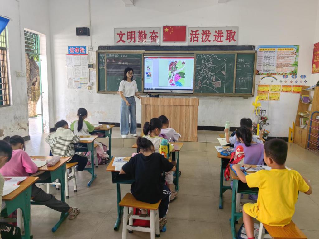 这次支教活动内容丰富多彩,形式别开生面,为那花小学的孩子们带来了不一样的体验。在舞蹈课堂上,吴群莲老师耐心地示范着每一个动作,从基础动作到组合动作,孩子们逐渐掌握了课桌舞的技巧,也感受到了舞蹈带来的快乐。在美术课堂上,孩子们在覃小飞老师的引导下,用手中的画笔描绘出心中的美好世界,或是色彩斑斓的风景画,或是充满童趣的卡通画,每一幅作品都承载着孩子们的梦想和对生活的热爱。在运动场上,体育老师带领学生开展各种有趣的体育活动。周巧燕老师组织学生开展篮球运球竞赛,梁卓权老师手把手教学生排球颠球,王雅杰老师示范足球运球过人,汪洁志老师带领学生练起了八段锦。孩子们积极参与各项运动,尽情奔跑欢笑,挥洒汗水。在运动中他们体会了运动的快乐,也学会了合作与竞争,还培养了坚韧不拔的意志品质。