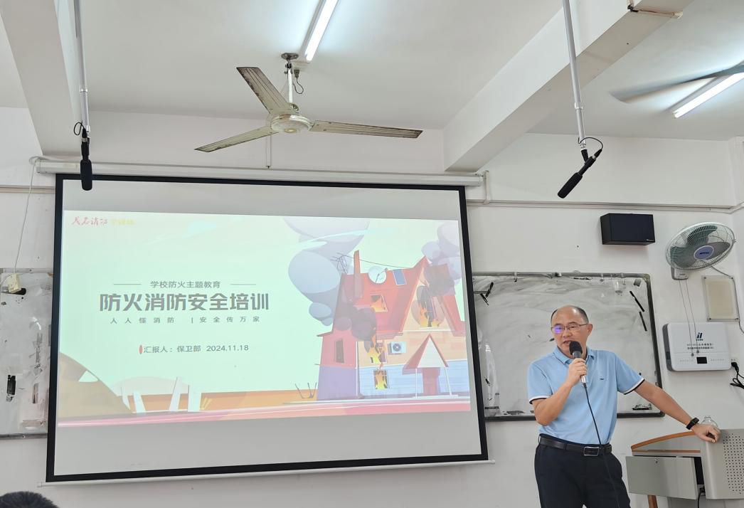 后勤部部长吴栋结合高校发生火灾的情况,深入分析了高校消防安全面临的严峻形势、火灾发生的规律、应急处置心态、应急处置办法等,并就进一步做好高校消防安全工作提出建议和要求。随后保卫部林青秀为大家宣讲火灾发生的特性、火灾的预防、火灾的应急处理等内容。