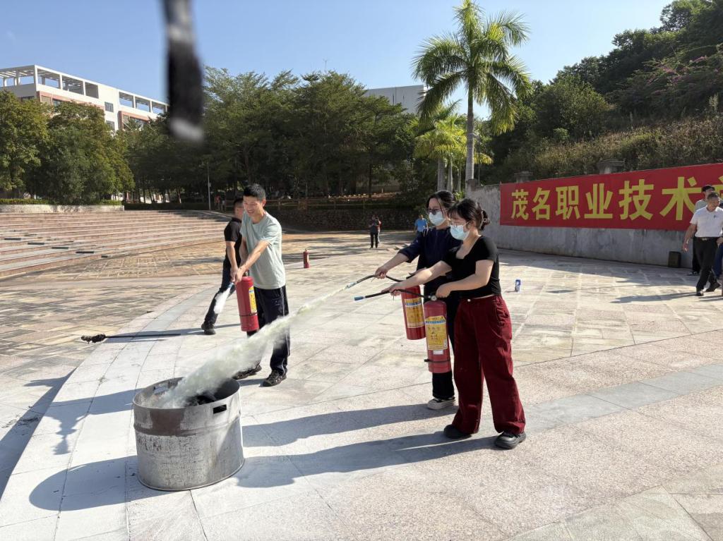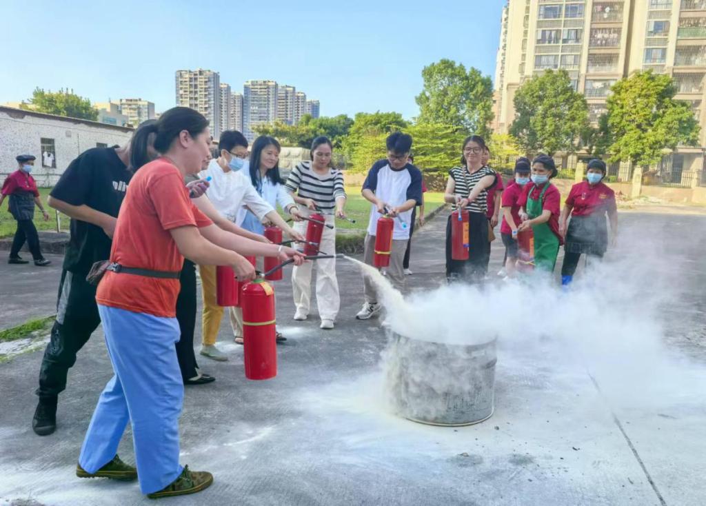 培训结束后,全体人员来到广场开展灭火器使用实操,现场人员逐一进行模拟灭火操作体验。