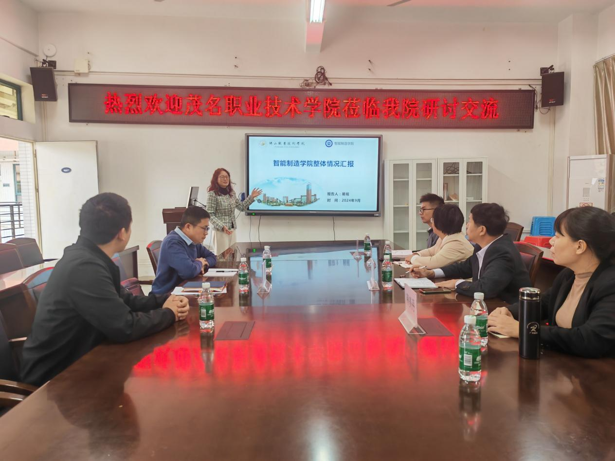 为进一步推进对口交流合作,更好地适应佛山制造业数字化转型升级对机电高职人才培养的迫切需求,近日,机电信息系负责人王开带领相关专业教研室主任、骨干老师,前往佛山职业技术学院学习取经,受到佛山职业技术学院副校长赵银生、汽车工程学院院长龙志军、智能制造学院副院长易铭的热情欢迎。双方就生产性实训基地建设、新能源汽车技术实践教学及智能制造专业群建设等问题交流了意见,为机电特色专业群建设提供了许多有益的启示性范例。