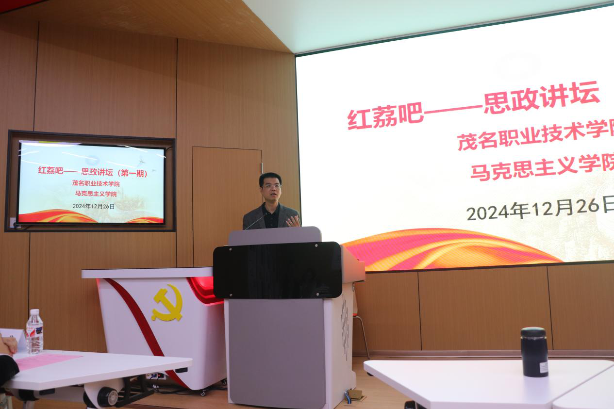 12月26日下午,茂名职业技术学院马克思主义学院于北校区图书馆一楼大思政课实践育人基地开展“红荔吧”——思政讲坛(第1期)活动,并特邀华南理工大学马克思主义理论专业博士、广东石油化工学院马克思主义学院副教授胡华作了题为“核刊论文是如何炼成的”的专题讲座。我院全体专兼职老师参与聆听与交流。本次讲座由我院专任教师陈诗敏主持。