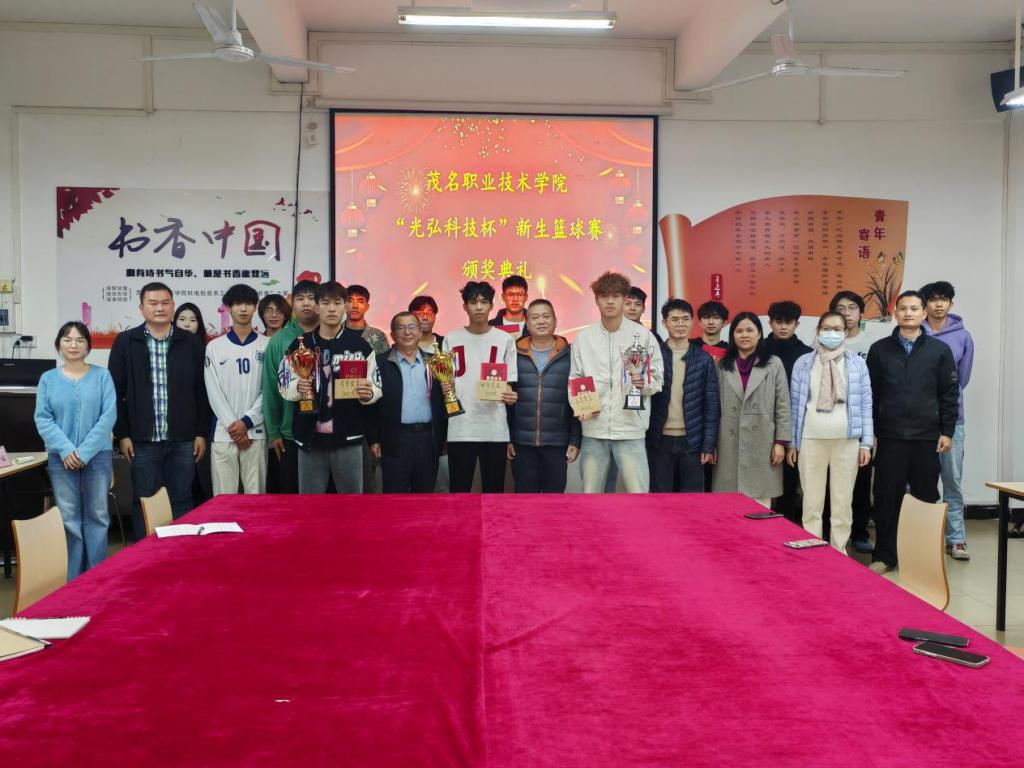 1月11日下午,学校首届“光弘科技杯”新生篮球赛颁奖仪式在机电大楼党员活动室隆重举行。系领导彭树福、赖辉,全体辅导员和获奖队伍代表、运动员代表参加了活动仪式,共同见证了学校又一校企合作、文化融合建设平台落地落实。