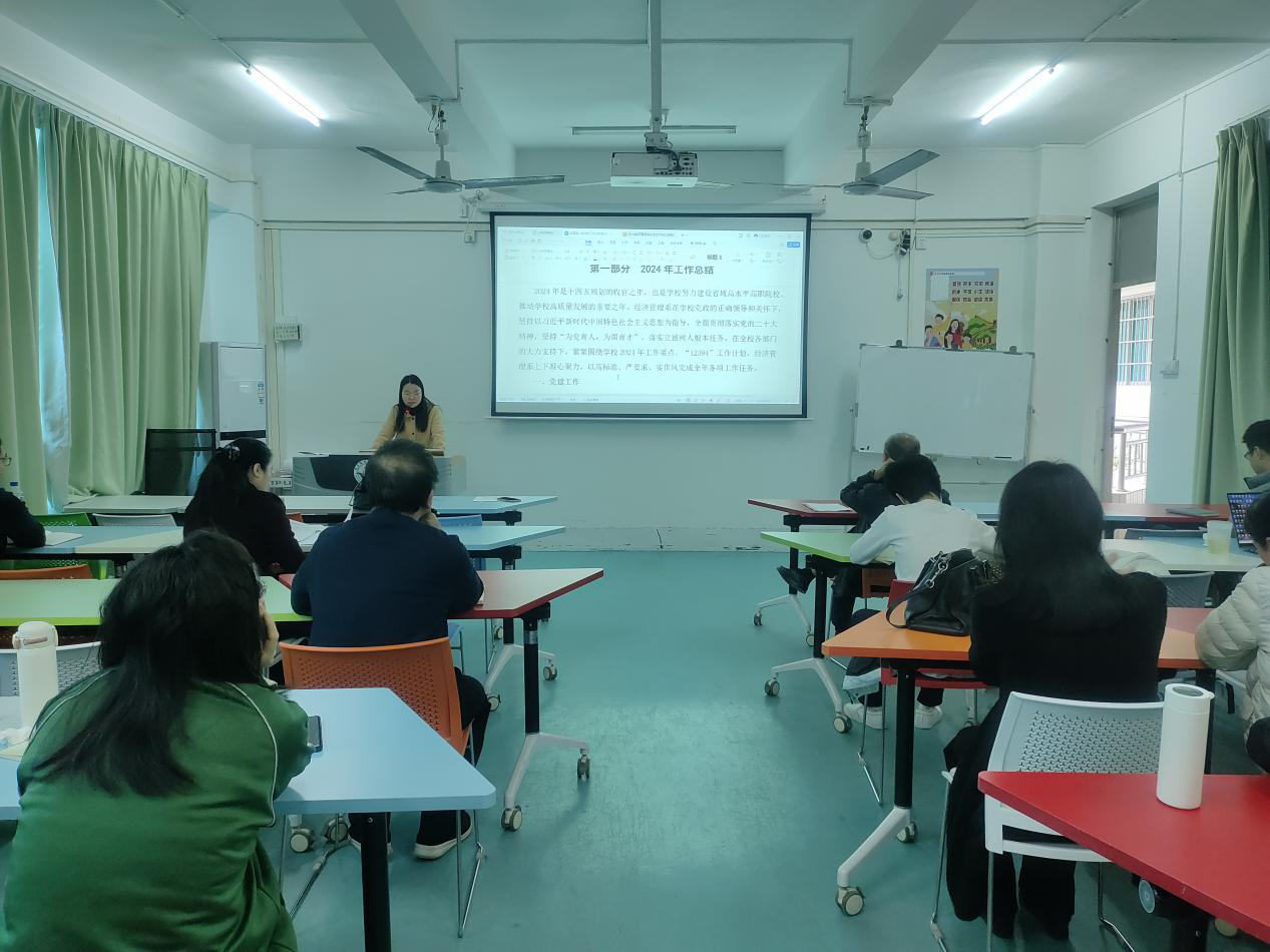 系副主任赵丽金对经管系2024年工作目标完成情况进行总结,总结中涵盖了思想建设、教科研课题建设、精品课程建设、实践教学基地建设、社会服务和社会培训等多方面内容,重点说明了 “百千万工程” 的完成情况,包括电商技能培训、开发乡村旅游资源和设计乡村旅游路线规划、搭建农旅营销平台等,还结合学校八项重点工作,如教师培训和人才队伍建设、专业群建设 “培优”工程、三教改革工程、专业团体情况、技能大赛获奖情况、加入产教融合共育,以及2024年我系各位教职工完成的标志性成果等方面进行了详细阐述。同时,对 2025 年工作计划进行了展望,明确了未来工作的方向和重点。