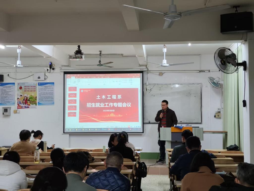 3月6日下午,土木工程系在北校区2-204室召开教学例会暨招生就业工作专题会议。本次会议由土木工程系负责人冯川萍主持,全体教职工参加了会议。