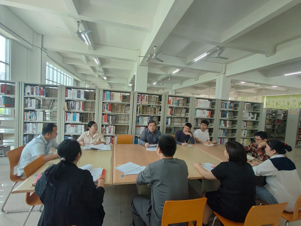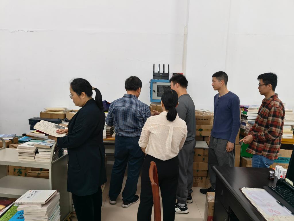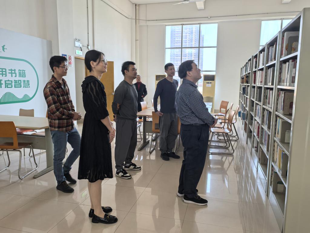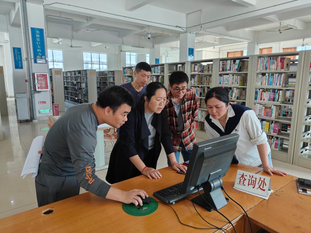 督查组与图书馆工作人员进行座谈,了解图书馆日常工作和意识形态工作开展情况,对馆藏图书排查,网站、新媒体账号、电子显示屏管理等工作进行了探讨和指导。(文/图:宣传部)