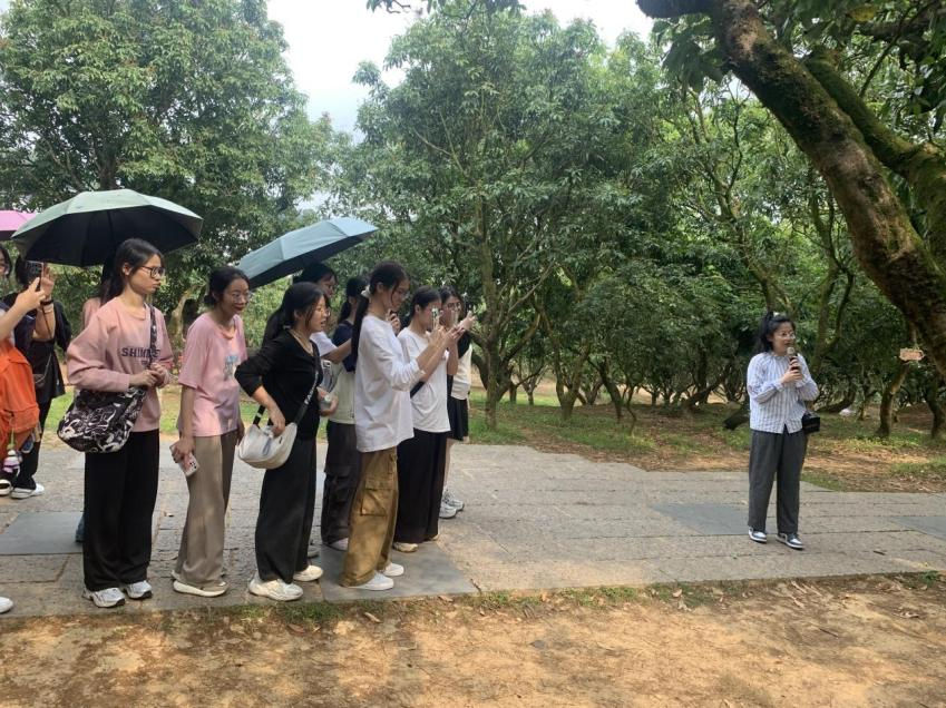 随后,师生们走进贡园。古木参天,枝繁叶茂,古老的荔枝树像饱经沧桑的智者,静静诉说着岁月的故事。在这里,师生们亲眼目睹千年荔枝树的风采,了解它们在历史长河中历经风雨却依然硕果累累的传奇。这些古荔枝树不仅是大自然的馈赠,更是当地农民守护家园、传承文化的见证,让大家对乡村的历史根基有了更直观的认识。