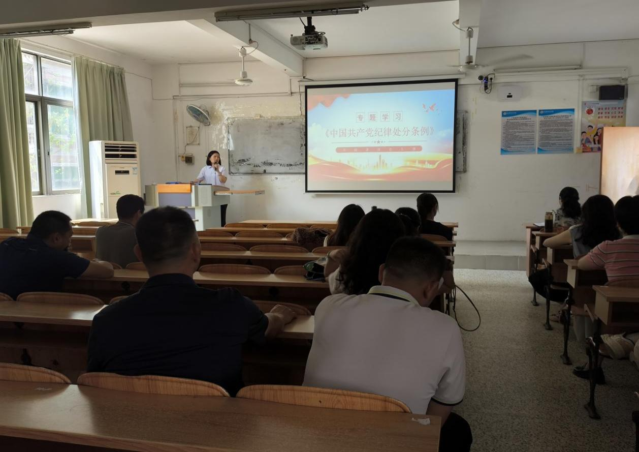 会上,卢火艳领学《中国共产党纪律处分条例》,重点学习政治纪律、工作纪律等要求,并结合部门开展师德师风建设工作实际,强调要严守纪律底线,将廉洁从教、学术诚信融入日常教学科研,以优良作风带动学风建设。党支部书记黄丽领学中央八项规定及其实施细则精神,强调在工作中要不断改进工作作风,杜绝形式主义、官僚主义、享乐主义、奢靡之风。党支部副书记彭仲元围绕“立德树人”,“教育公平”等内容领学《中华人民共和国教育法》《中华人民共和国职业教育法》,强调要将法治思想融入教育教学工作中,推动依法治教落地见效。