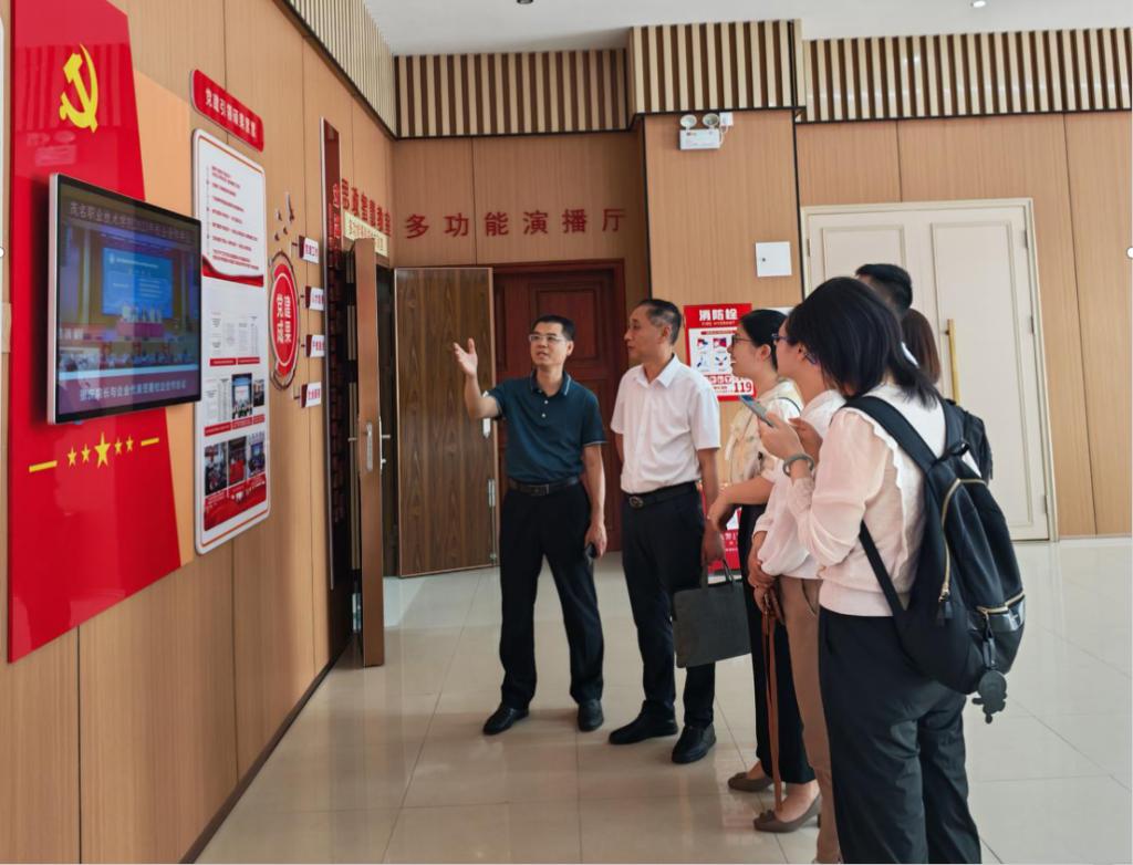 当日下午,在我校马克思主义学院院长梁辉良的陪同下,珠海城职调研组实地考察了北校区图书馆“大思政课”实践育人基地。梁辉良详细介绍了基地立足区域发展需求的功能定位,重点阐述了教学场景设计如何实现课程与实践的深度融合。双方就虚拟仿真技术应用、实践资源开发等关键问题展开深入交流。