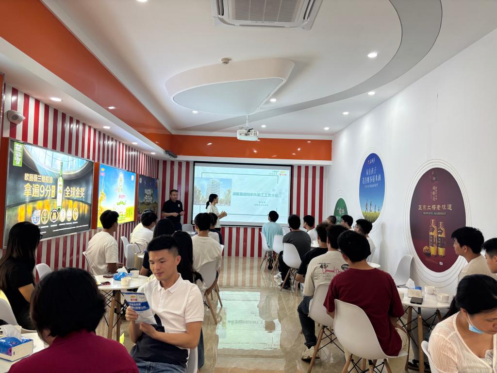 活动伊始,为活跃气氛,企业精心安排了“自制香囊”、“欢喜钓粽”和“水上乒乓球”三项趣味游戏,并设置了丰富奖品。现场气氛热烈,同学们热情高涨,积极参与互动。随后,企业车间主管张宪彬带领学生参观了生产车间,详细介绍了企业发展历程与主营业务,并进行了“油脂基础知识与加工工艺”专题培训。