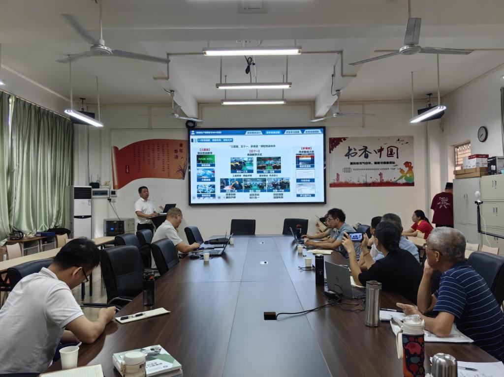 孙大许老师以“智能网联汽车技术专业的设置与实践”为核心,从行业需求、人才培养方案设计到课程体系构建展开深入讲解。他强调,智能网联汽车技术是新能源汽车与人工智能技术的深度融合,“这一专业的设置不仅是响应汽车产业升级的需求,更是职业教育服务区域经济发展的必然选择。”此外,孙大许还结合佛山职院汽车工程学院的建设经验,分享了专业实训室规划、课程资源开发及教师团队科研项目申报的实践心得,并与在场教师就“教学科研中常见问题”展开互动研讨,为机电信息系新专业建设提供了可复制的“样本”。