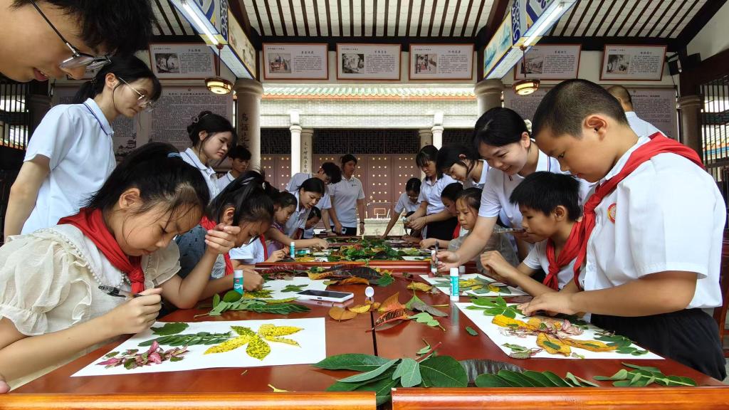 在突击队员的创意启发和指导下,孩子们在村中寻找“白土村的颜色”——绿色的树叶、红色的花朵,细长的草茎化作“冠军之路的轨迹”,黄色落叶拼贴成“五星红旗的五角星”。由突击队设计主题并主持的《树叶里的白土记忆》树叶拼贴画创作,不仅锻炼了儿童的想象力、创造力和动手能力,更通过这一创新形式引导儿童感知乡土自然,铭刻家乡印象。