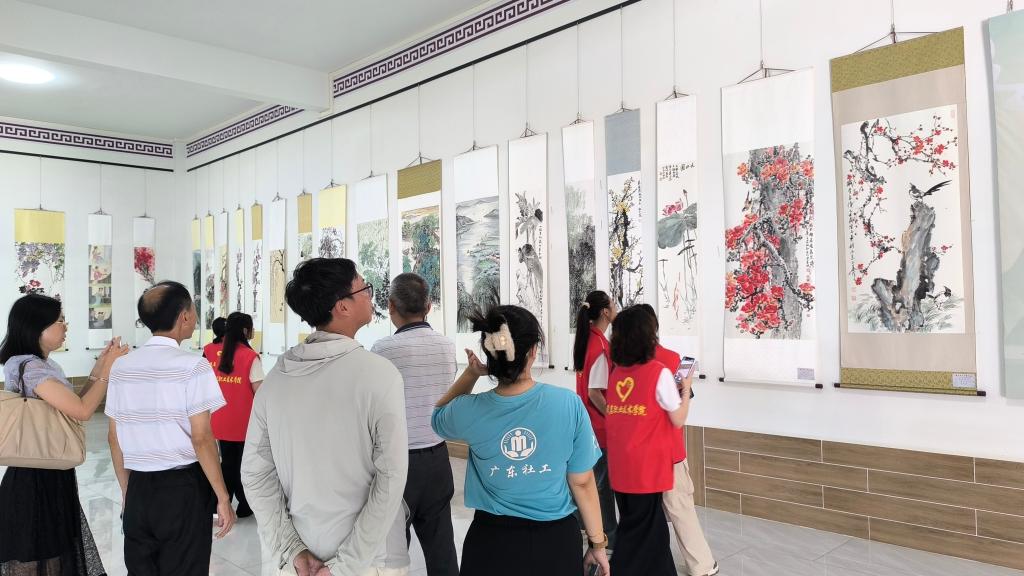 师生在社工带领下参观了仁风国学院,欣赏电白美术家协会女子分会作品及典藏展品,并实地探访电白区第二批建设的新农村。