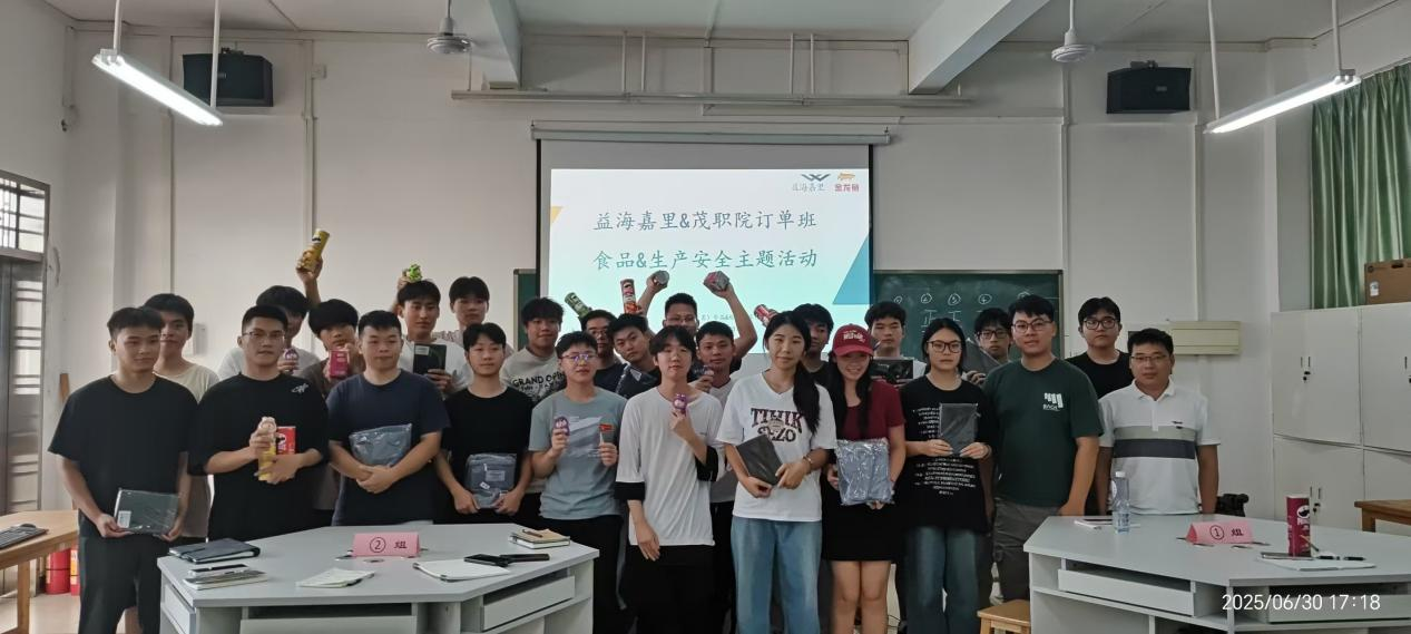 为强化订单班学员的食品与生产安全意识,为下半年进入益海嘉里各工厂实习奠定坚实基础,6月30日下午,益海嘉里茂名工厂与学校联合举办的“安全启航,知识护航”食品与生产安全主题活动在南校区7号栋501室圆满举行。
