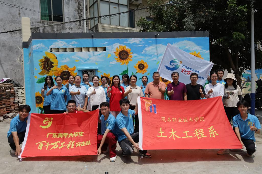 为积极响应广东青年大学生 “百千万工程”突击队行动的政策号召,茂名职业技术学院土木工程系组织建筑设计等专业师生成立“我是乡村绘画师”筑梦者实践队及“逆境中的暖阳2025”助学护航队,奔赴电白区高地街道墨胶社区后湾村等地,开展了为期五天的“三下乡”社会实践活动,以实际行动助力乡村发展。本次活动在杨木兰、陈小蓉、何悦宁三位老师的精心指导下,由陈楷东、何喜娣等 13 名同学积极投身参与。实践内容丰富多元,涵盖人居环境美化改造、文化创意与保育、乡村文化建设、海洋科学知识及海洋环境保护法普法宣传以及国家资助和助学贷款政策下乡行等多个方面。在实践活动中,师生团队用汗水浇灌梦想,用行动书写青春华章,为墨胶社区带来了丰富多彩的文化活动,收获了村民们满满的赞誉。