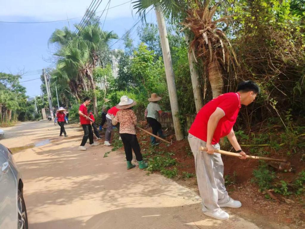 在政策宣讲之余,队员们以实际行动参与美丽乡村建设。他们自带扫帚、垃圾袋等工具,对琼凡村主干道、文化广场的杂草、杂物进行彻底清理,用汗水换来村容村貌的整洁。劳动间隙,队员们围坐与村民拉家常,将资助政策、防诈骗知识融入闲聊,以“润物细无声”的方式传递政策温度。“这些学生娃娃不仅讲政策清楚,还帮我们打扫卫生,真是好样的!”村民李阿姨竖起大拇指称赞。
