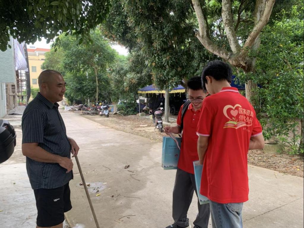 “阿叔,孩子上大学的助学贷款申请流程我再跟您说一遍,毕业后还本宽限期为5年,最长贷款期限不超过22年,学生在校期间不需要支付利息……”活动中,队员们化身“政策宣传员”,携带宣传手册走村入户,针对村民关心的学前教育资助、义务教育营养改善计划、高校助学金、助学贷款等政策,用方言耐心解读,并结合本地真实案例,详细讲解申请条件、流程及还款细则。对部分家庭经济困难的村民,队员们还一对一协助整理申请材料,消除他们“孩子上学贵、还款压力大”的顾虑,将“不让一个学生因家庭经济困难而失学”的温暖承诺送到田间地头。