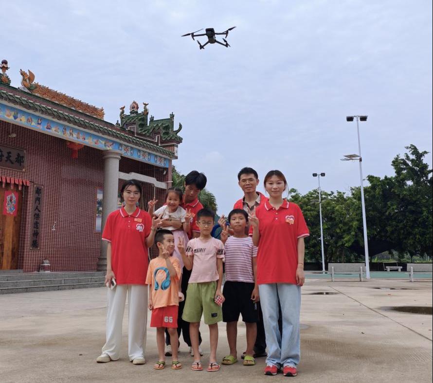 作为机电信息系特色活动,队员们在村文化广场策划了无人机科普展示。随着一架架无人机腾空而起,在空中表演悬停、旋转、编队飞行等动作,现场孩子们发出阵阵欢呼。队员们借此契机,用通俗易懂的语言讲解无人机的飞行原理、操作技巧,并展示其在农业植保、灾害监测、物流运输等领域的应用案例。“长大了我也要学开无人机,给家里的果园喷农药!”7岁的小林同学眼中闪烁着对科技的向往。此次科普活动不仅点燃了乡村孩童的科学梦想,也为村民打开了“智能农业”的新视野。