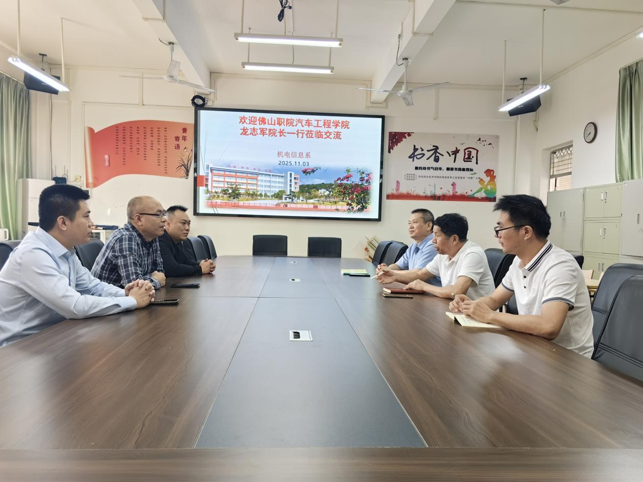 11月3日,佛山职业技术学院汽车工程学院院长龙志军教授一行莅临我校机电信息系,就汽车专业建设与实训教学创新等进行深度洽谈交流。座谈会由系负责人王开教授主持。